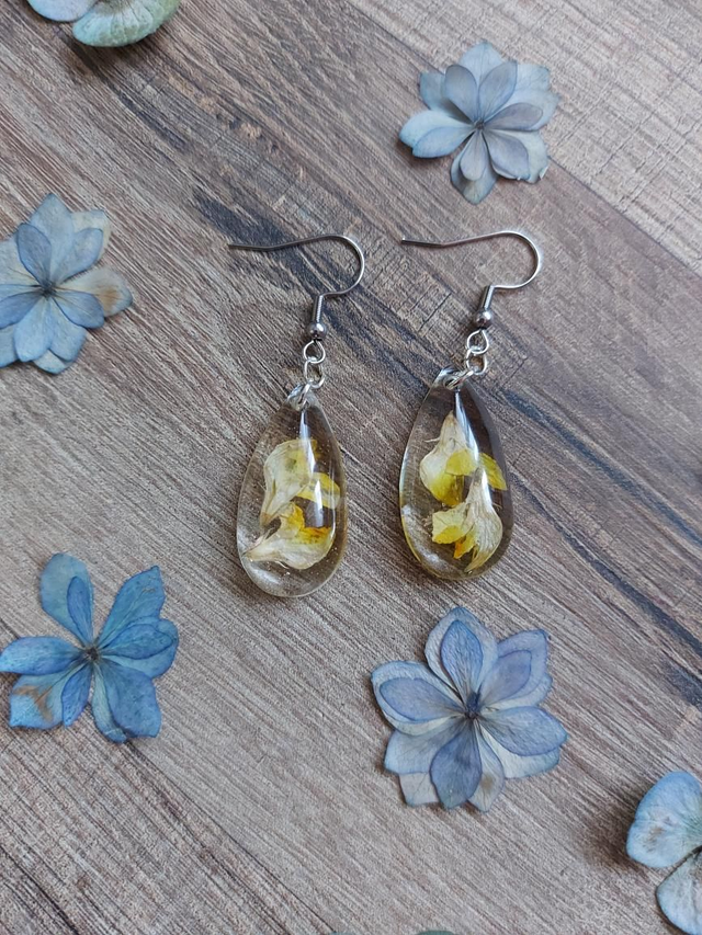 Paire de boucles d'oreilles en gesses des prés, hauteur 5cm. Avec 2 pétales par boucle d'oreille.