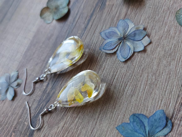 Chaque fleur est récoltée localement en Loire-Atlantique et séchée par mes soins. Les fleurs gardent leur couleur naturelle dans la résine.
